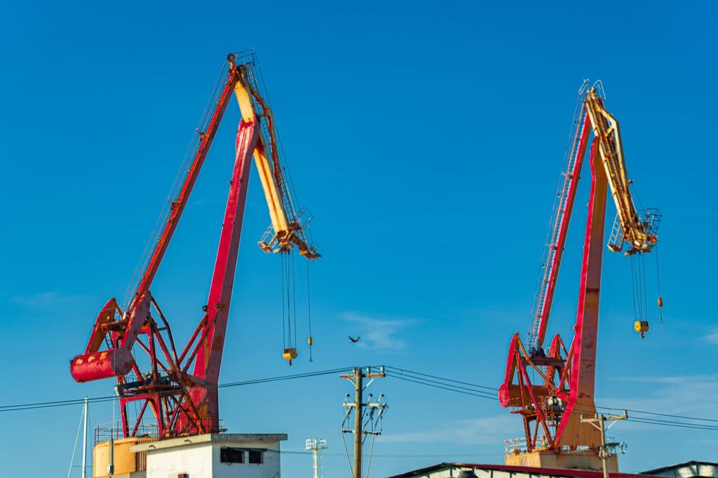Aquí, bajo el colosal amparo de las grúas,