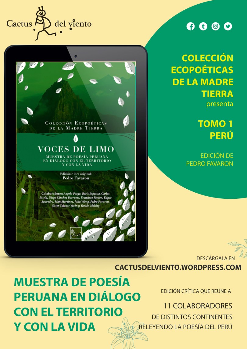 Hoy, 12 de enero de 2021, en Cactus del viento celebramos el lanzamiento oficial del tomo 1 de la Colección Ecopoéticas de la Madre Tierra. Esta Colección, quizá la primera de su tipo en Hispanoamérica, busca presentar desde una perspectiva ecológica, espiritual e intercultural el legado poético y ecopoético de los territorios y culturas de nuestro continente. El camino emprendido comenzó hace tres años como una plática entre los poetas Pedro Favaron y Yaxkin Melchy en la selva peruana y se afianzó durante el año pasado, 2020, entre noticias de la pandemia, correos y llamadas para sacar adelante este proyecto. Gracias a la colaboración de una red de poetas, académicos, diseñadores y amigos, este proyecto, que tiene una visión continental, ha salido adelante.